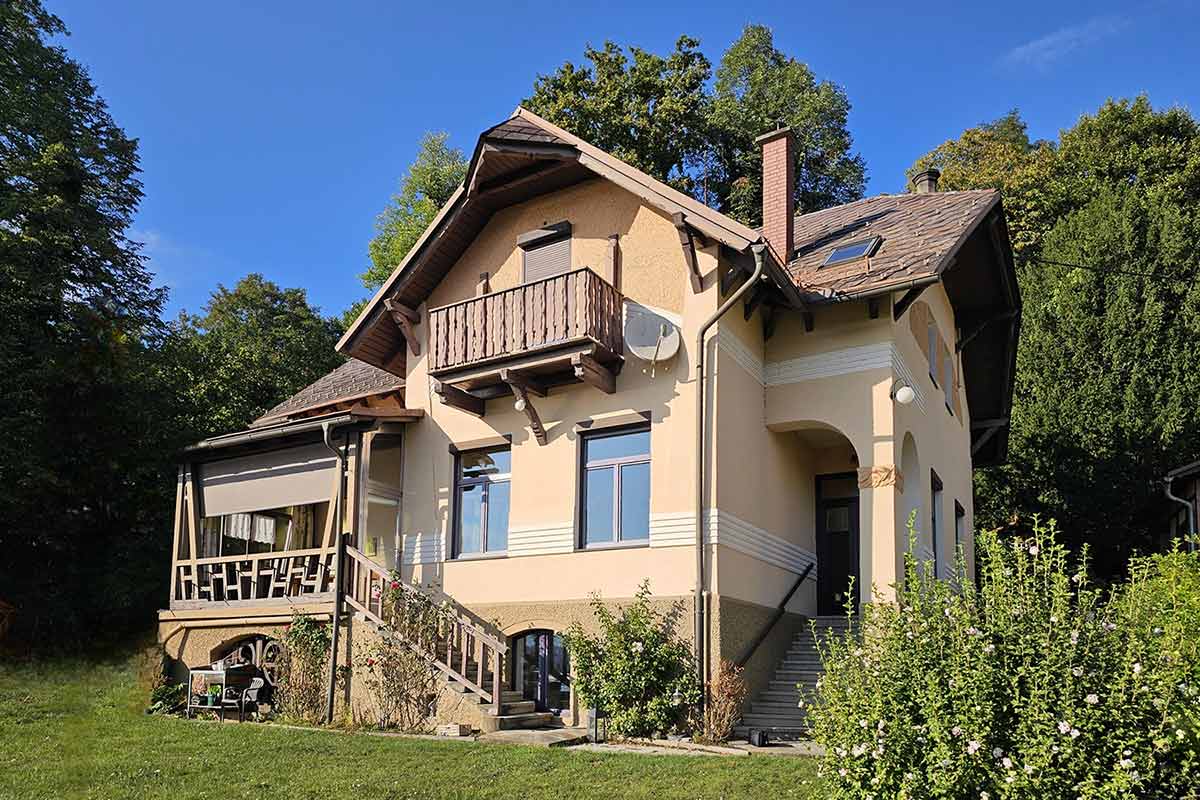 Klagenfurt, Villacher Strasse 352 (damals Gem.Krumpendorf) Architekt: Karl Haybäck, Wien Baumeister: Franz Madile Bauherr: Apotheker Viktor Hauser Foto: H.Kramer, 2025