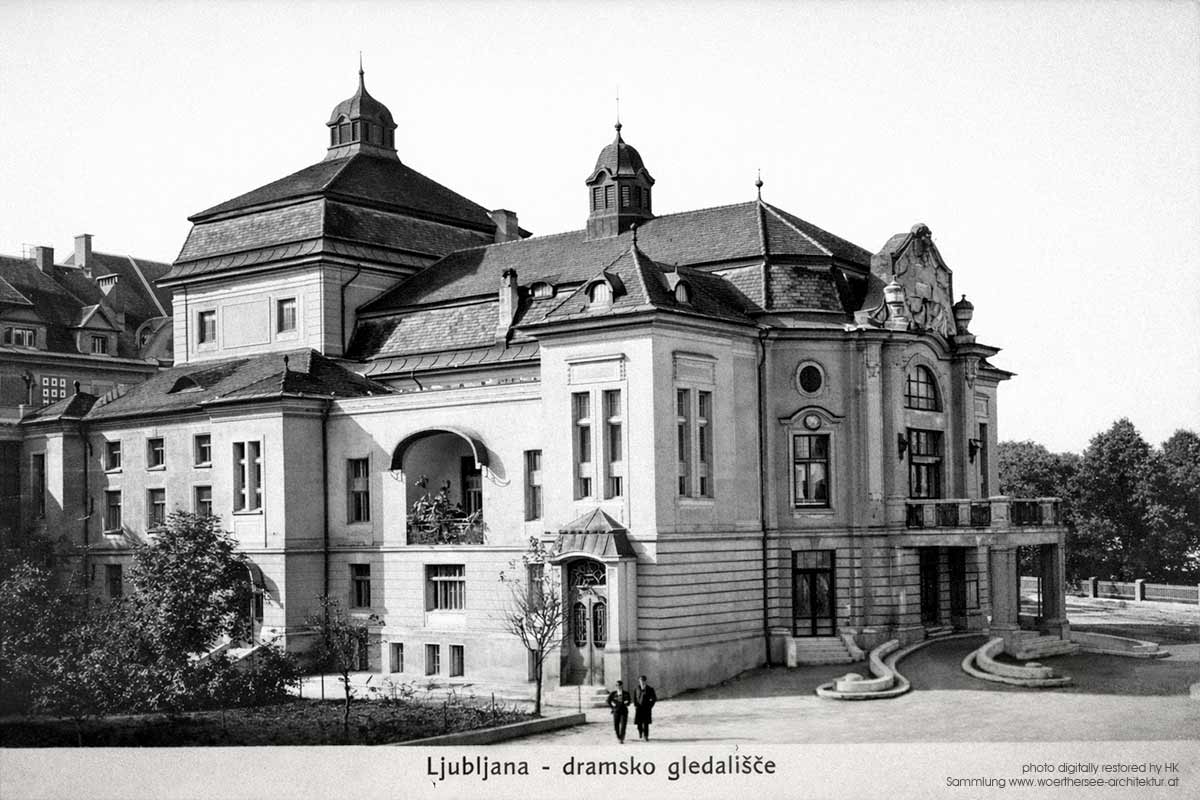 Slowenische Nationale Dramatheater in Ljubljana, 1911 Schauspielhaus Ljubljana, (damals Kaiser-Franz-Josef-Jubiläumstheater) Architekt