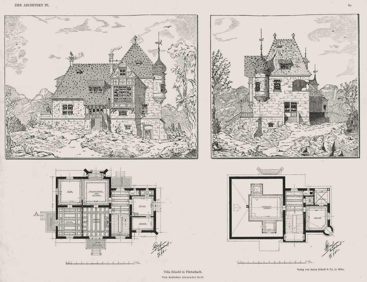 Entwurf Villa Göschl in Pörtschach, 1894 Architekt Alexander Graf (Quelle: anno, Der Architekt 1898)